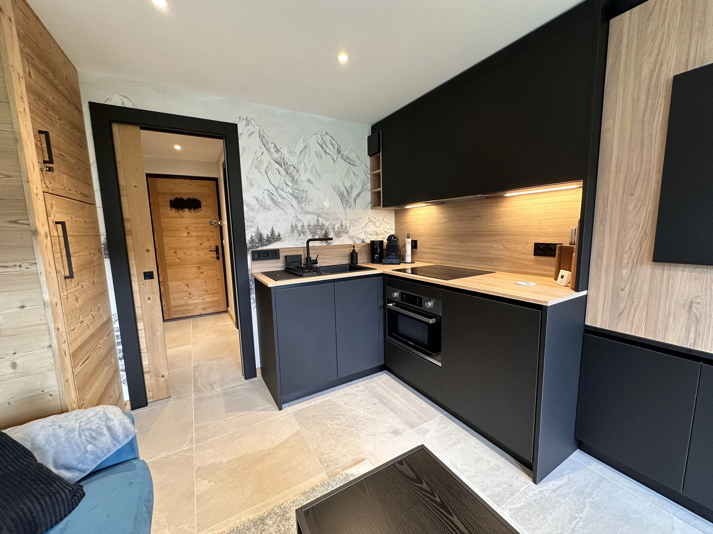Grâce à notre équipe de designers intégrée et à notre matériauthèque, nous vous accompagnons dans le choix de finitions soignées, du bois aux plans de travail en pierre sur mesure, tout en proposant également des options plus accessibles, parfaitement adaptées aux biens destinés à la location.